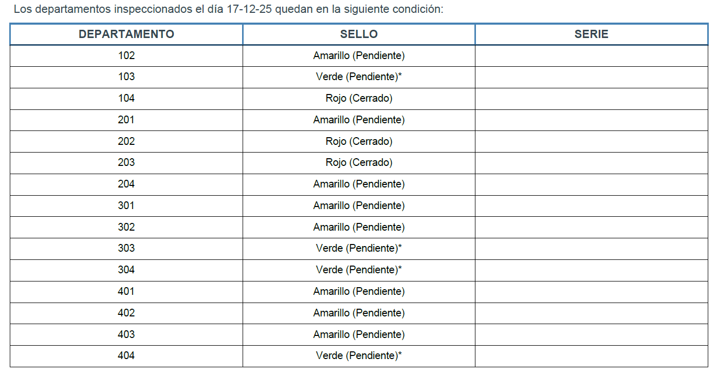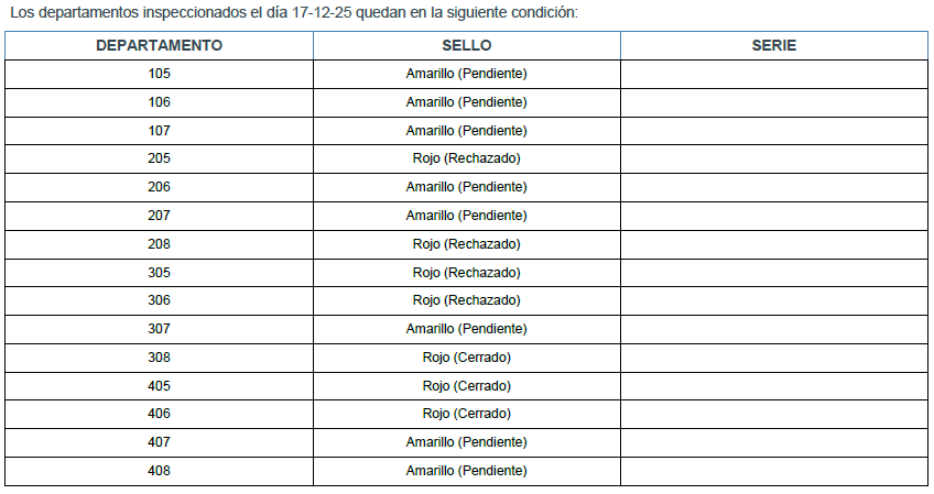 - Torre B (departamentos terminados en 5, 6, 7 y 8):